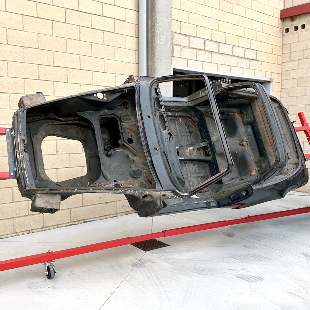 Vehículo Porsche 911T 2.4 de 1973, un proyecto que destaca por su exigencia técnica y atención meticulosa a los detalles. Hemos realizando el desmontaje completo del vehículo y la preparación de la carrocería para el proceso de chorreo, una etapa esencial que permitirá eliminar cualquier residuo de pintura y signos de corrosión, garantizando una superficie completamente limpia y una carrocería totalmente saneada.