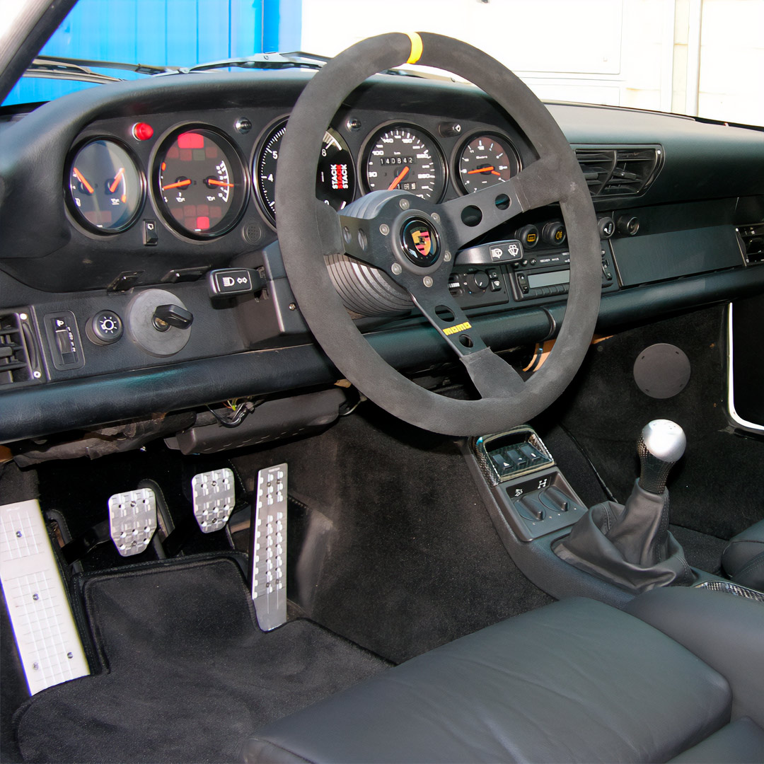 Combina detalles modernos como asientos GT3, acabados en fibra de carbono y semi arco de barras antivuelco lo que lo convierte en una obra maestra tanto para el uso en pista como para los amantes de los vehículos Porsche clásicos. Este Porsche 911 Carrera 4 RS Turbolook ofrece un rendimiento impresionante y una estética de carreras, siendo una opción más asequible que algunas alternativas con carrocería de carbono.